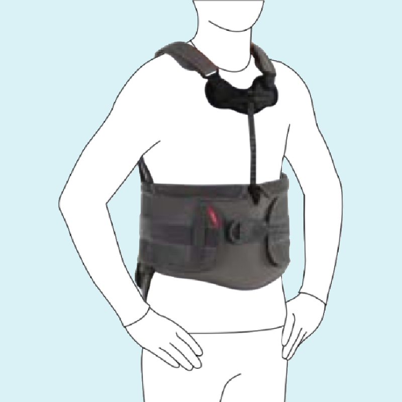 Relieves the thoracic spine through active straightening and muscular stabilisation while increasing the intra-abdominal pressure
